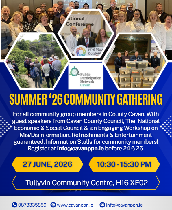 Many Thanks, The CavanPPN Team (Aisling, Finian & Daniel). info@cavanppn.ie, CavanPPN, CCLD, Corlurgan, Cavan. H12 X9Y1
